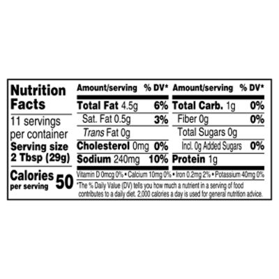 Amount Per Serving Calories. 0 Daily Value Total Fat 0g 0. 97 fat 2 carbs 1 protein.